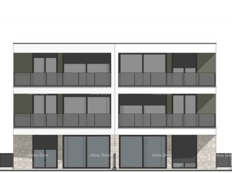 U ponudi je stan na 2. katu novogradnje koji se sastoji od hodnika s garderobom, kupaonice, dvije spavaće sobe, kuhinje s blagavaonicom te dnevnim boravkom i natkrivenom terasom.