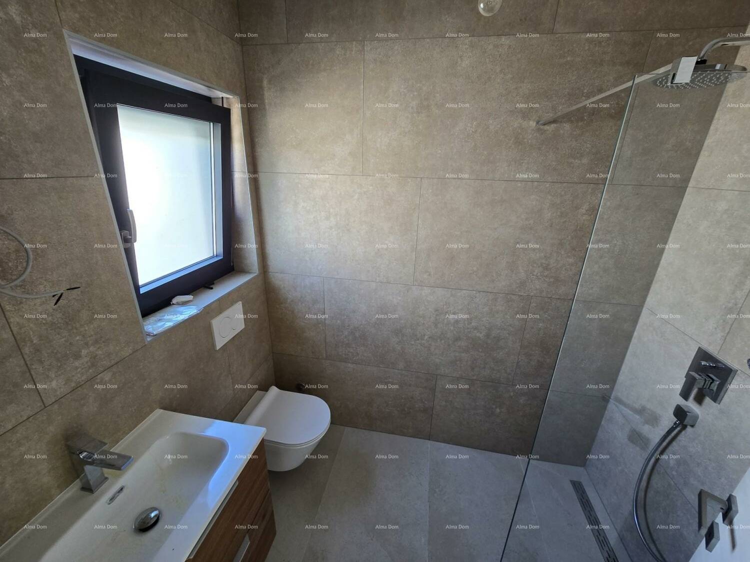Prozori su troslojne antracit boje s vanjske i unutarnje strane, s podiznim kliznim prozorima u dnevnom boravku s izlazom na terasu, također samo na ovim prozorima su instalirani električne rulete.