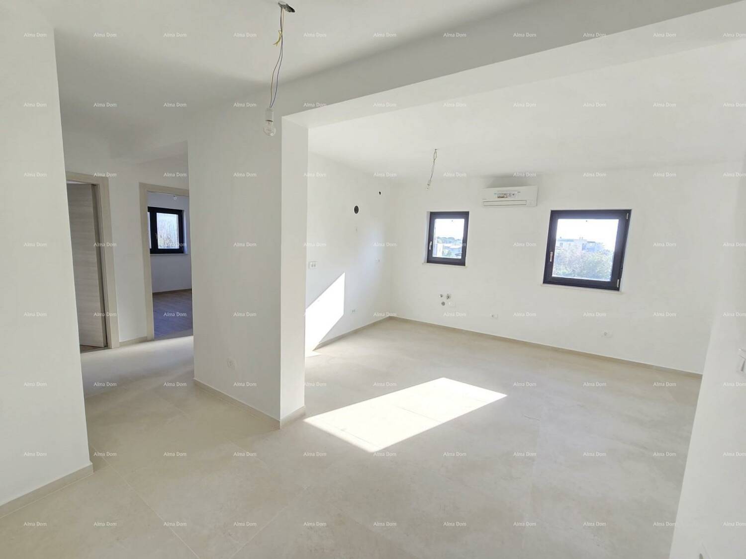 Zgrada je izgrađena, stan je useljiv. Opremljen je inverter klima uređajima u svakoj sobi na podu kojih je laminat, a u kupatilu, dnevnom boravku i kuhinji su postavljeni kvalitetne keramičke pločice s instalacijom podnog grijanja.