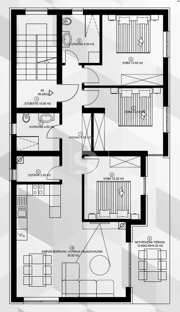 Terasa s izlazom iz dnevnog boravka i jedne spavaće sobe