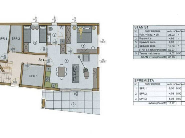 * spremište SPR1 – 6.5 m2 * 0.50 = 3.25 m2