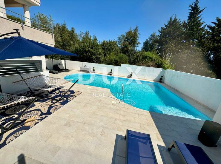 Radi se o stanu koji ima okućnicu koja Vam nudi bazen, sunčalište, prekrasni prostor za sjedenje i boravak, i još dodatnog prostora zbog kojeg ćete imati osjet da boravite u kući, a ne u stanu što ovu nekretninu čini izrazito atraktivnom.