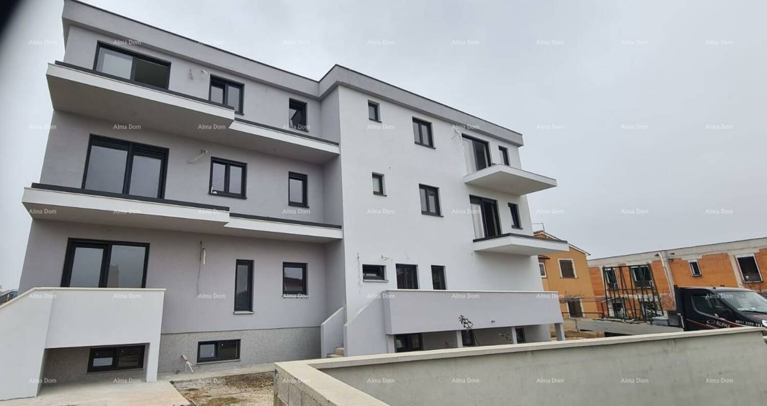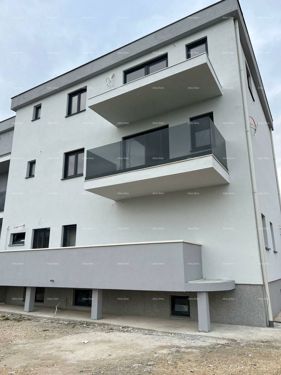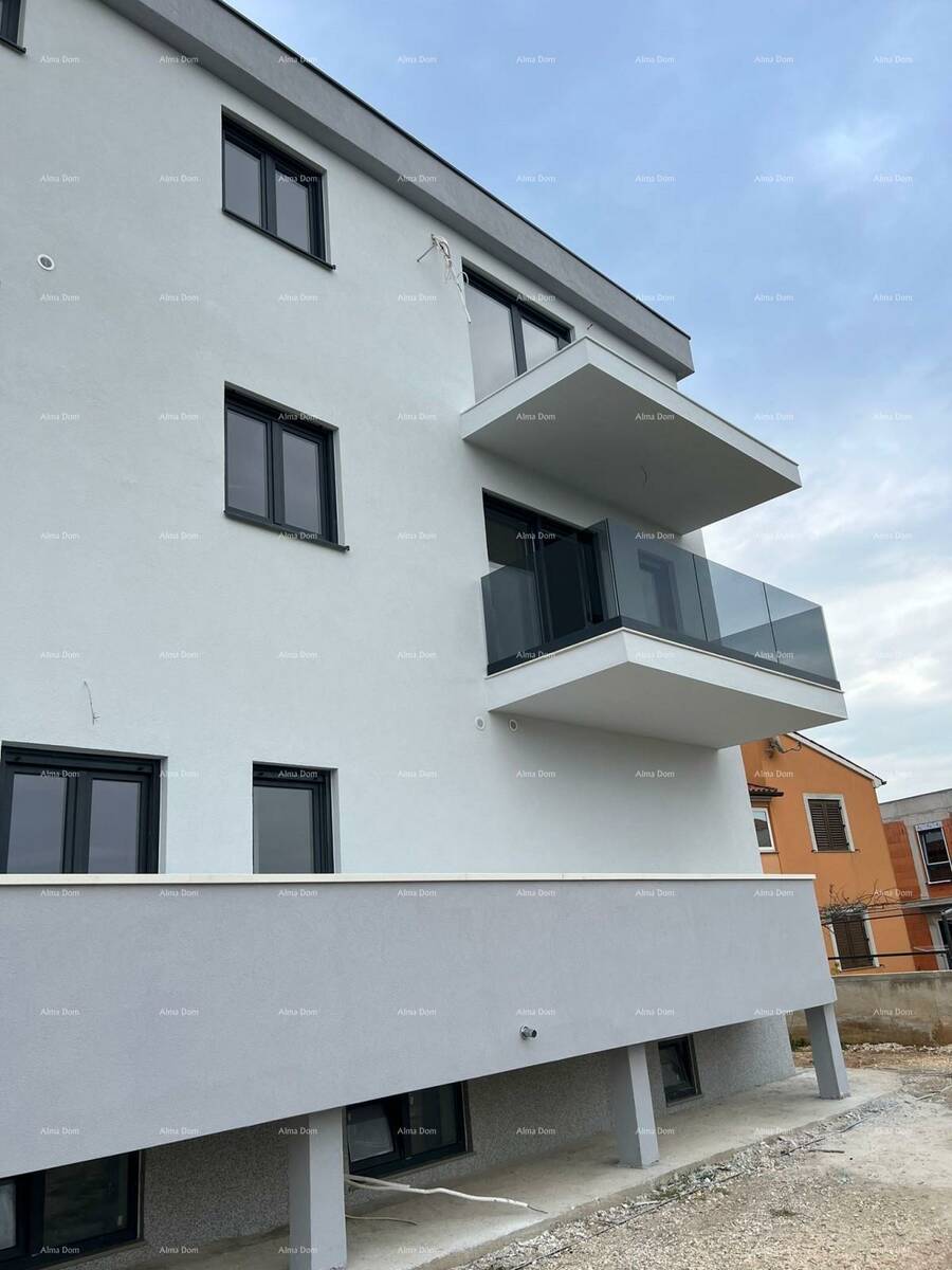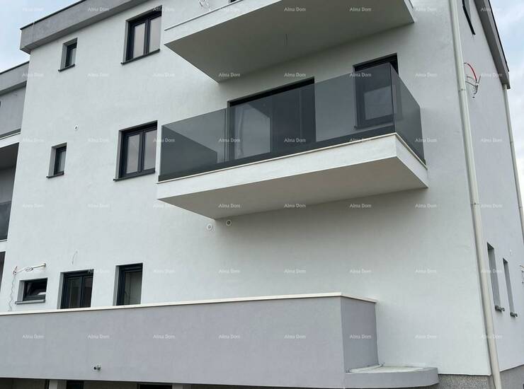 Moderni stan sa mnogo svijetla, u neposrednoj blizini centra Medulina, nalazi se na 1. katu novogradnje.