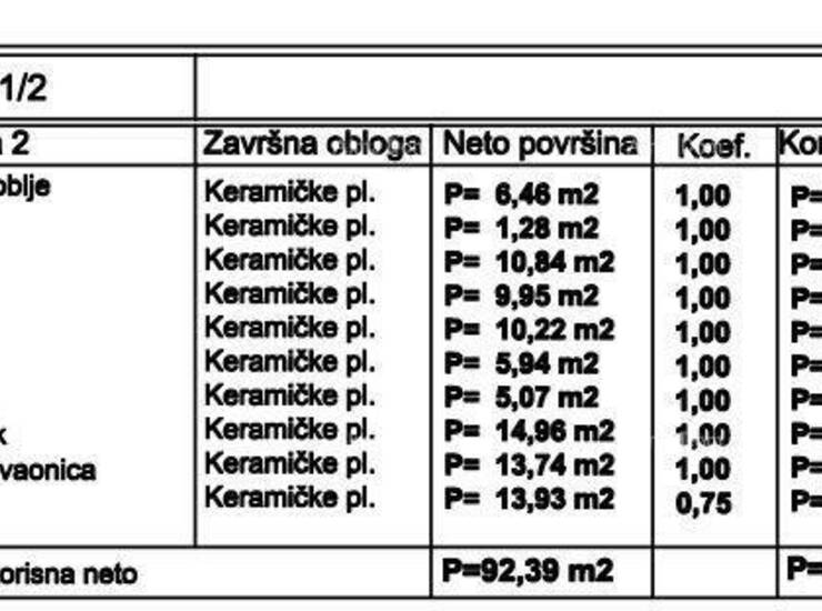 Ukupno S2 neto/korisno neto - 92.39m2/88.91 m2