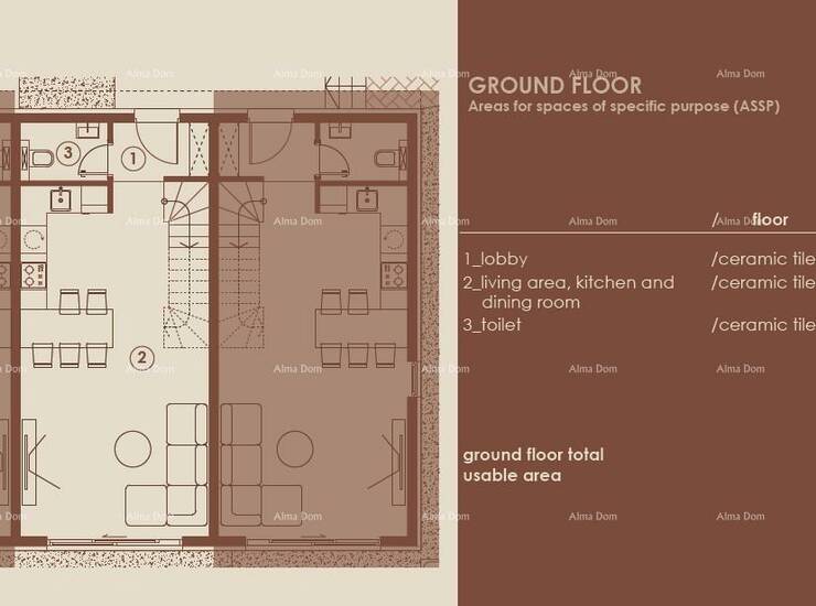 Apartman 2 površine 109.38 m2 uključuje prizemlje, 1.kat i 2.kat.