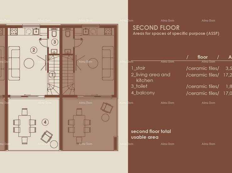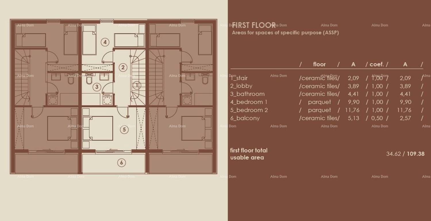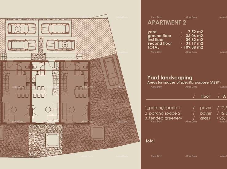 Apartman 2 površine 109.38 m2 uključuje prizemlje, 1.kat i 2.kat.