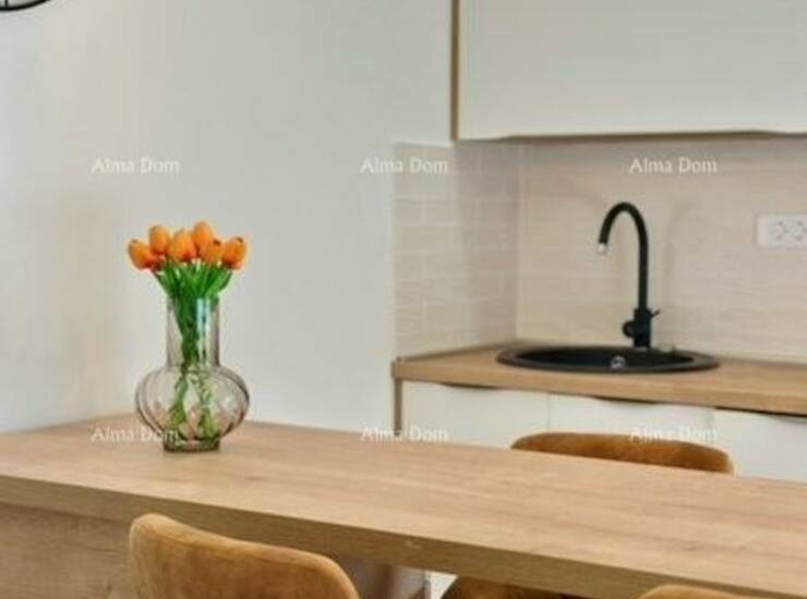 U ponudi garsonjera u prizemlju 34,74 m2. Kompletno uređena i namještena 2024. godine. Opremljena klimom i podnim grijanjem. Velika terasa 12m2. Garsonjeri pripada parkirno mjesto.