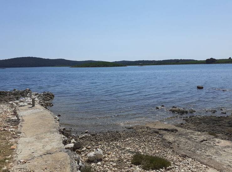 Prodaje se građevinsko zemljište udaljeno 150 m od mora. Građevinska čestica je površine 526 m2, dok udio u putu čini 53 m2. Zemljište je ravno i pravokutnog oblika, a s kata budućeg objekta bio bi moguć pogled na more. Zemljište je stambene namjene P+1.