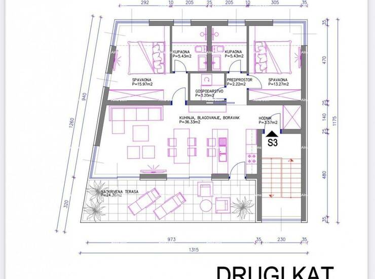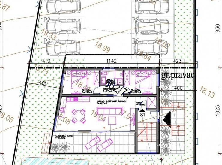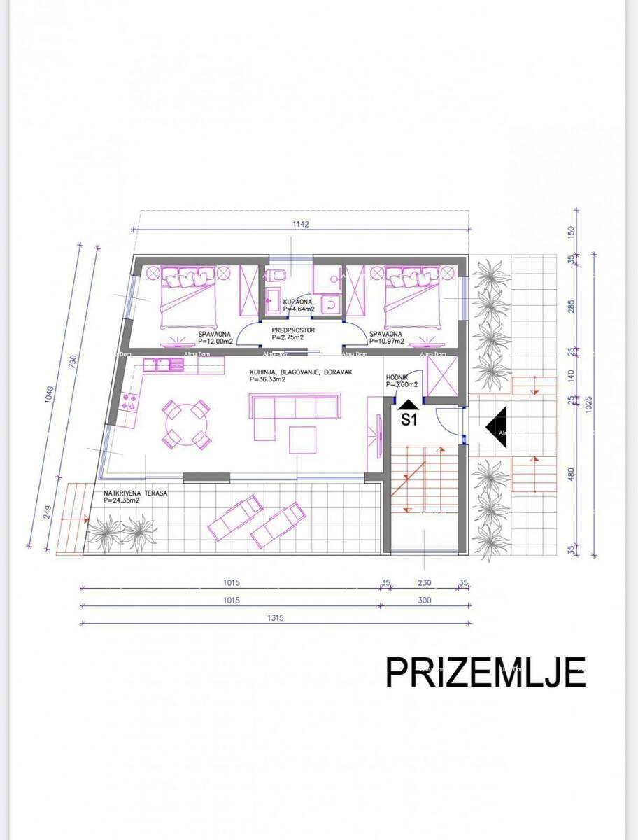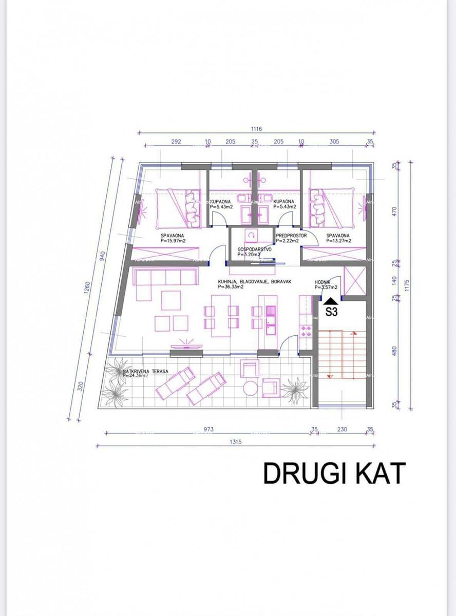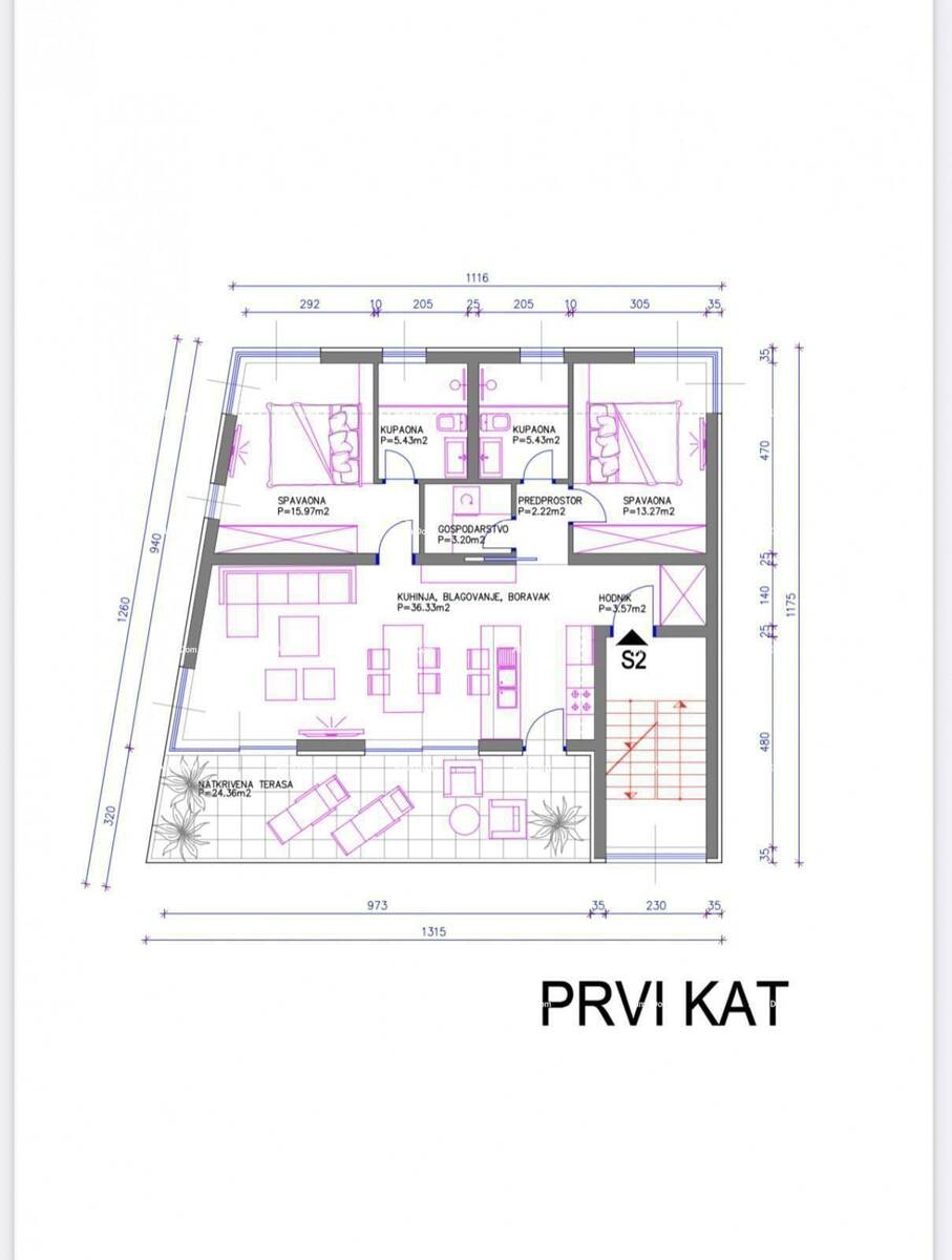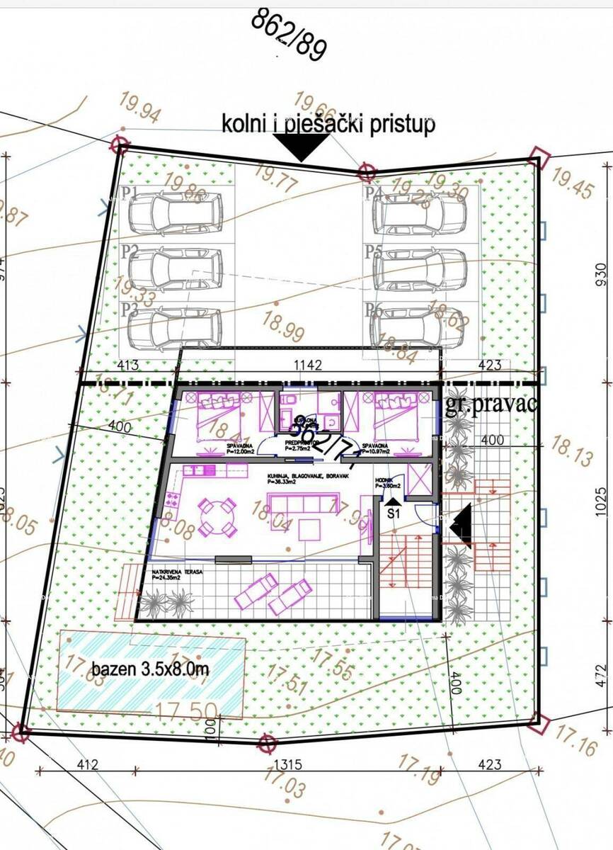 Na prodaju atraktivno građevinsko zemljište s pravomoćnom građevinskom dozvolom za izgradnju tri luksuzna apartmana – svaki apartman na zasebnoj etaži (prizemlje, prvi i drugi kat). Projekt uključuje i podrumske prostorije.