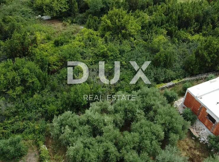 Zemljište posjeduje građevinsku dozvolu za vilu prizemlje + kat , te se s prvog kata vidi more.