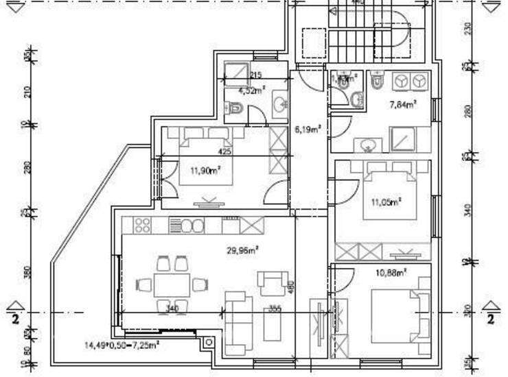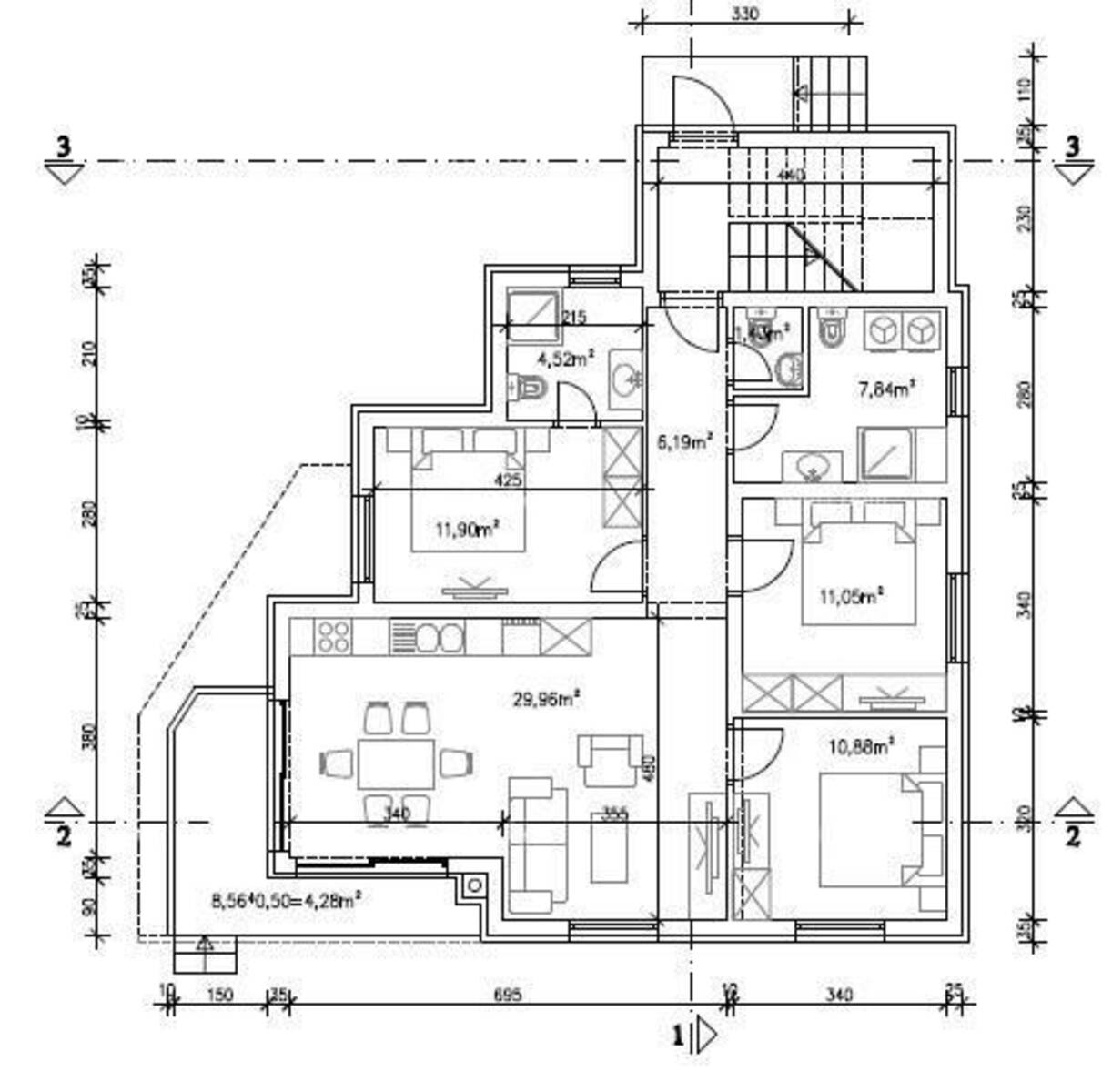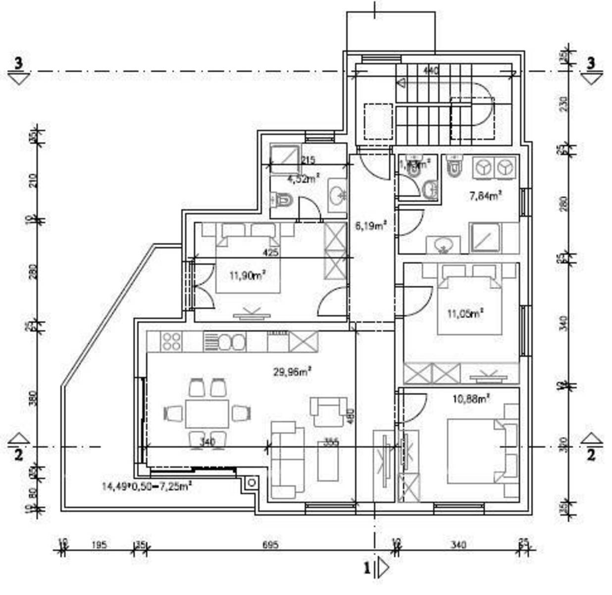 Predviđena zgrada sastoji se od tri stambene jedinice.