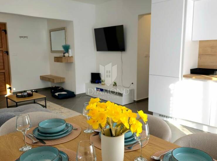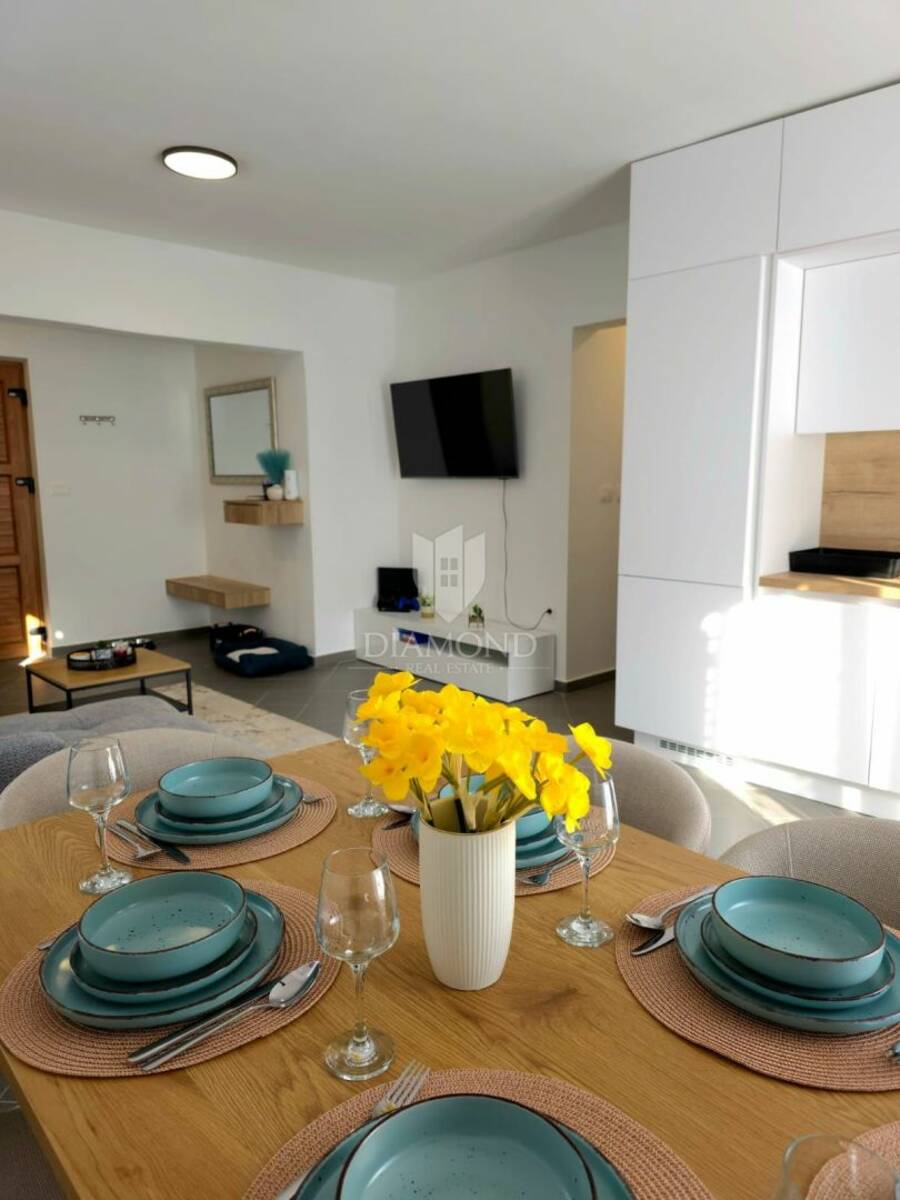 Nekretnina je kompletno renovirana – uključujući podne i zidne obloge, instalacije, sanitarije, stolariju, kuhinju i sav namještaj. Prodaje se potpuno namještena i spremna za useljenje ili nastavak iznajmljivanja.