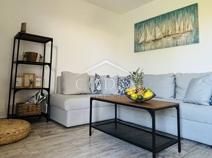 Kuća raspolaže s dvije prostrane terase, od kojih je jedna natkrivena i opremljena velikim roštiljem — savršeno mjesto za druženje i uživanje na otvorenom. Unutrašnjost čine dvije udobne spavaće sobe, svijetao dnevni boravak, funkcionalna kuhinja te kupaonica s WC-om. Nekretnina je kompletno namještena i adaptirana, spremna za useljenje bez dodatnih ulaganja.
