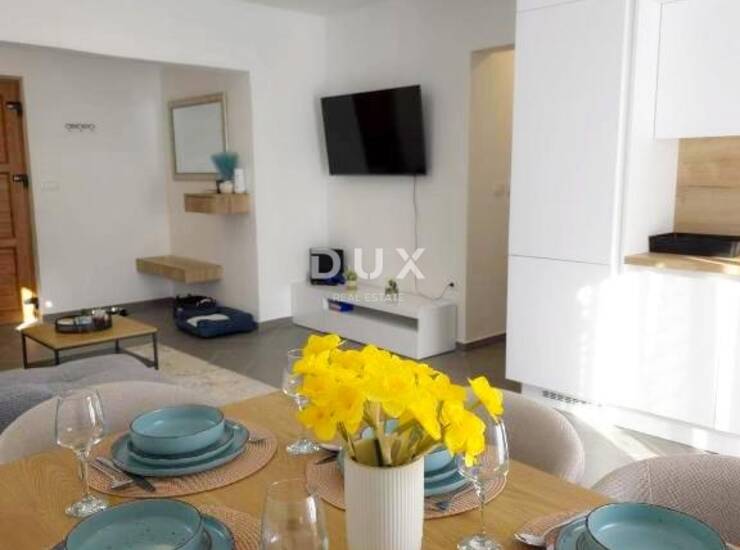 Na padinama iznad jadranske obale, u mirnom i zelenom kutku Kvarnera, smjestila se potpuno obnovljena dvojna kuća, savršeno uklopljena u prirodni ambijent. Ova nekretnina površine 130 m² raspoređena je na tri etaže i nalazi se na uređenoj parceli veličine 300 m². Udaljena svega nekoliko minuta vožnje od mora i jedne od najljepših prirodnih plaža regije, predstavlja idealnu kombinaciju funkcionalnog prostora i hedonističkog ugođaja.