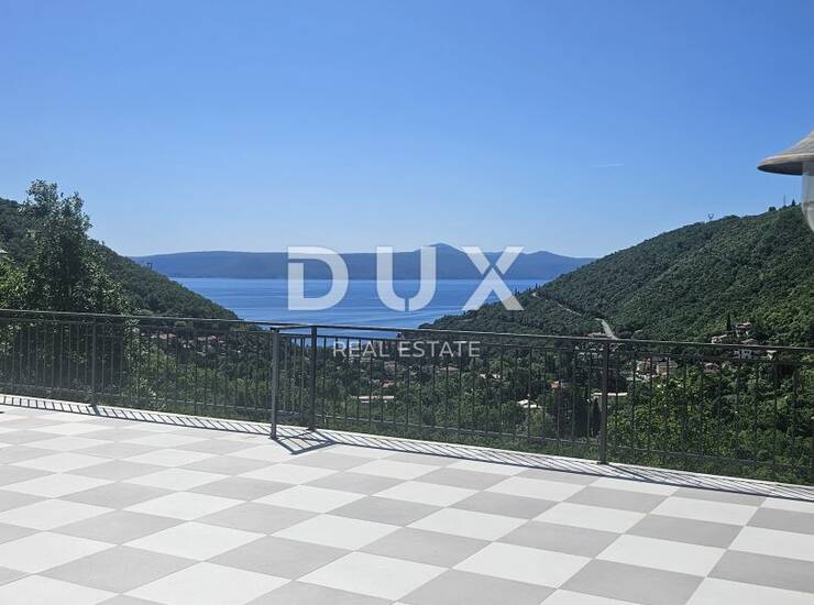Mošćenička Draga, novogradnja, kuća s bazenom, pogled na more