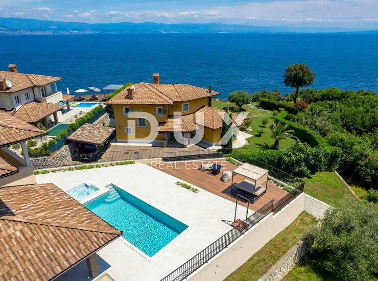 Ova posebna vila mediteranskog stila smještena je na jednoj od najljepših lokacija na obali, u prvom redu do mora na impresivnoj litici u blizini Opatije. Ova prekrasna nekretnina nudi nevjerojatan pogled na more, Cres i pruža potpunu privatnost i mir. Useljiva je 06/2023 i prodaje se s potpuno novim, nikad korištenim interijerom.