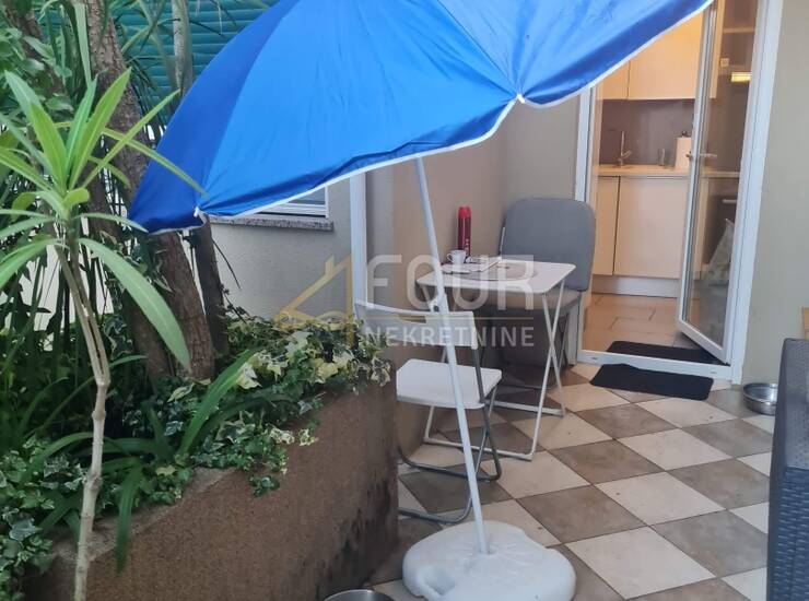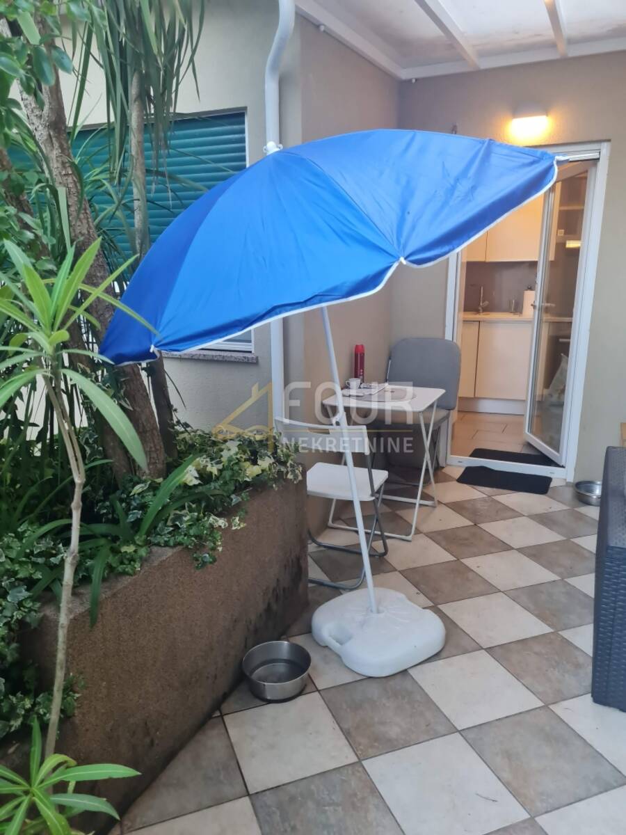 Prodaje se stan s pripadajućim studio apartmanom, ukupne korisne površine približno 108 m2, smješten u mirnom okruženju, svega desetak minuta hoda od mora. U naravi, nekretnina funkcionira kao komforan 3S+DB stan s dodatnim studio apartmanom u dvorištu, dok je prema vlasničkom listu evidentiran stan površine 84,36 m2, rasporeda 2S+DB.