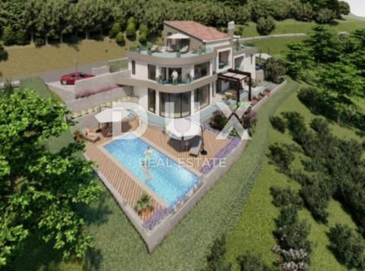 BRSEČ, ZEMLJIŠTE S ZAPOČETOM GRADNJOM I PREDIVNIM POGLEDOM NA MORE