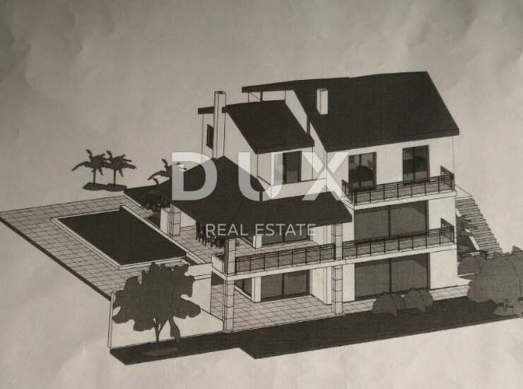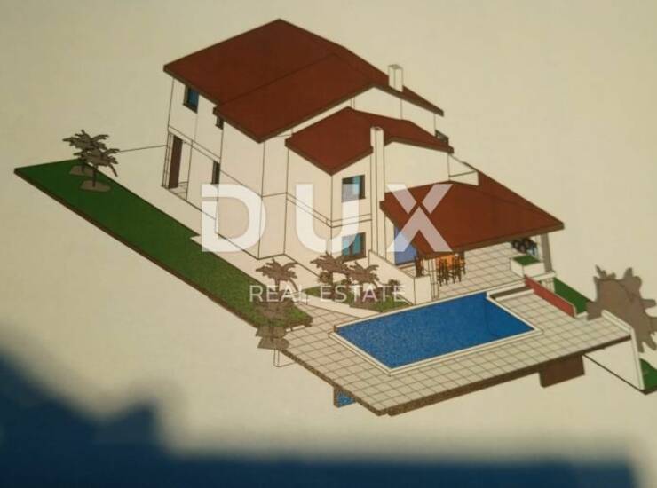 BRSEČ, MARTINA - 2 građevinska terena 2600m2 s građ. dozvolom i pogledom na more za apartmane / obiteljsku kuću / villu / kuću za iznajmljivanje - odmor s bazenom