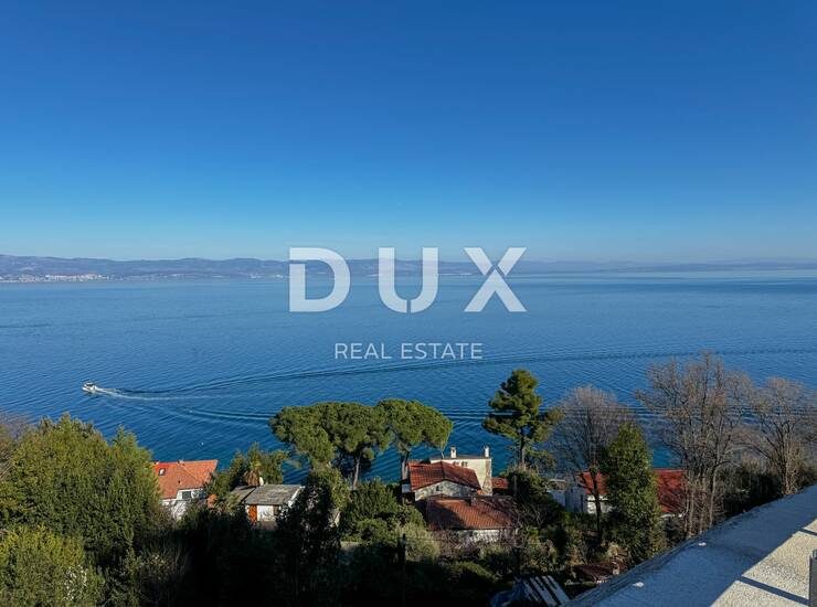 OPATIJA, RIVIERA - zemljište za izgradnju obiteljske kuće s bazenom 300m od plaže, panoramski pogled na more