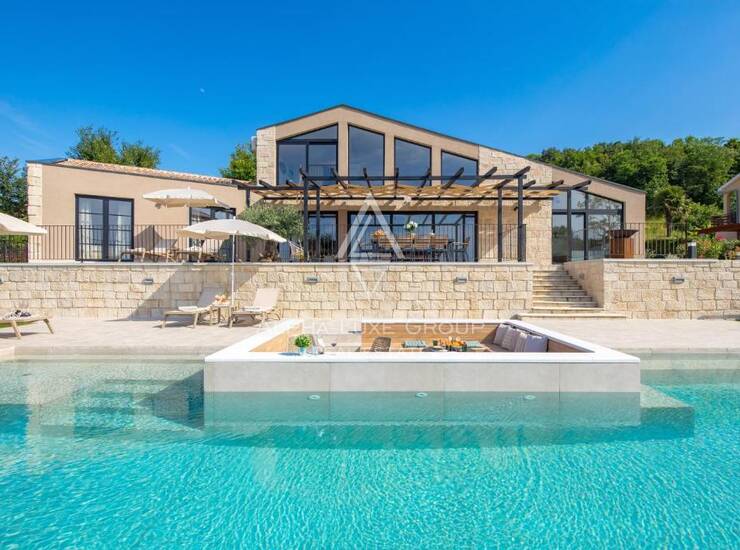 Na otvorenom prostoru dominira beskonačni bazen s preljevom na tri strane i sustavom slane vode. Njegov dizajn stapa se s prirodnim krajolikom, stvarajući dojam da se voda prelijeva prema udaljenim istarskim brežuljcima. Cijelo imanje je ograđeno, osvijetljeno i osigurano, a natkriveno parkiralište nudi prostor za tri vozila. Vila je idealna za one koji traže luksuz, mir i snažnu povezanost s prirodom.