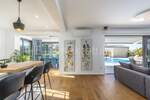 Otvoreni prostor u prizemlju vile u kojem se nalazi prostrani dnevni boravak s izlazom na sunčalište i bazen koji je povezan ljetnom kuhinjom, saunom, prostorom za fitness i natkrivenim jacuzzijem kao i ostatak dvorišta i zelene površine namijenjen mlađim uzrastima za igru, kuhinja i blagovaona, jedna spavaća soba s walk-in kupaonicom i gostinjski wc
