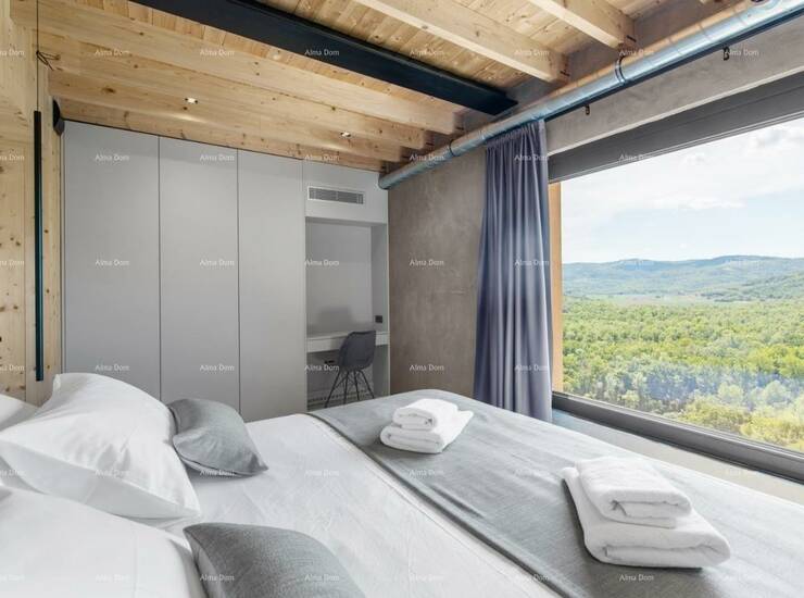 Zamislite savršen spoj prirode, luksuza i privatnosti – upravo to nudi ova vila, smještena na očaravajućoj lokaciji s pogledom na slikoviti Motovun i netaknutu istarsku prirodu.