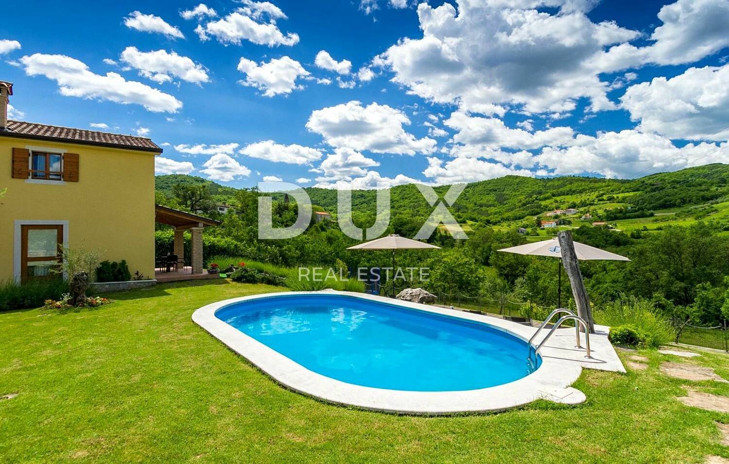 U okolici tog pitoresknog istarskog srednjovjekovnog gradića, u harmoniji nježno zelenih terasa vinograda i maslinika i bujnih šumskih brežuljaka, na prodaju je rustikalna kuća s bazenom.