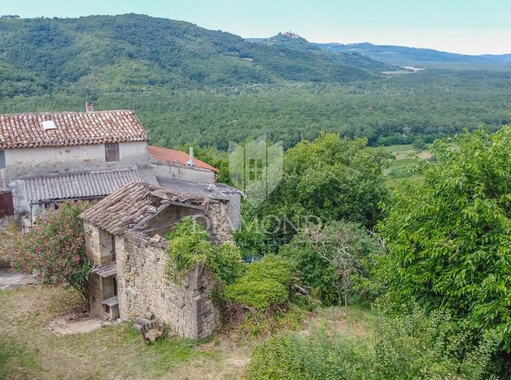 Imanje se nalazi u malom istarskom selu od svega nekoliko kuća, vlasnik prodaje svoje dvije kamene kuće, koje su trenutačno u ruševnom stanju, ali zrače starinskim šarmom i pružaju izvrsnu osnovu za obnovu u tradicionalnom stilu. Kameni zidovi, izvorna arhitektura i položaj na blago povišenom terenu pružaju pregršt mogućnosti za stvaranje jedinstvene vile ili rustikalne kuće za odmor s pogledom prema Motovunu.