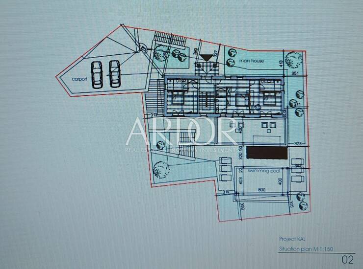 Na uređenoj okućnici, ispred kuće smjestit će se infinity bazen dimenzija 8x4 metara.