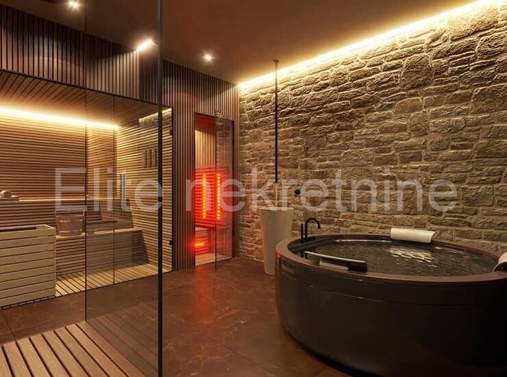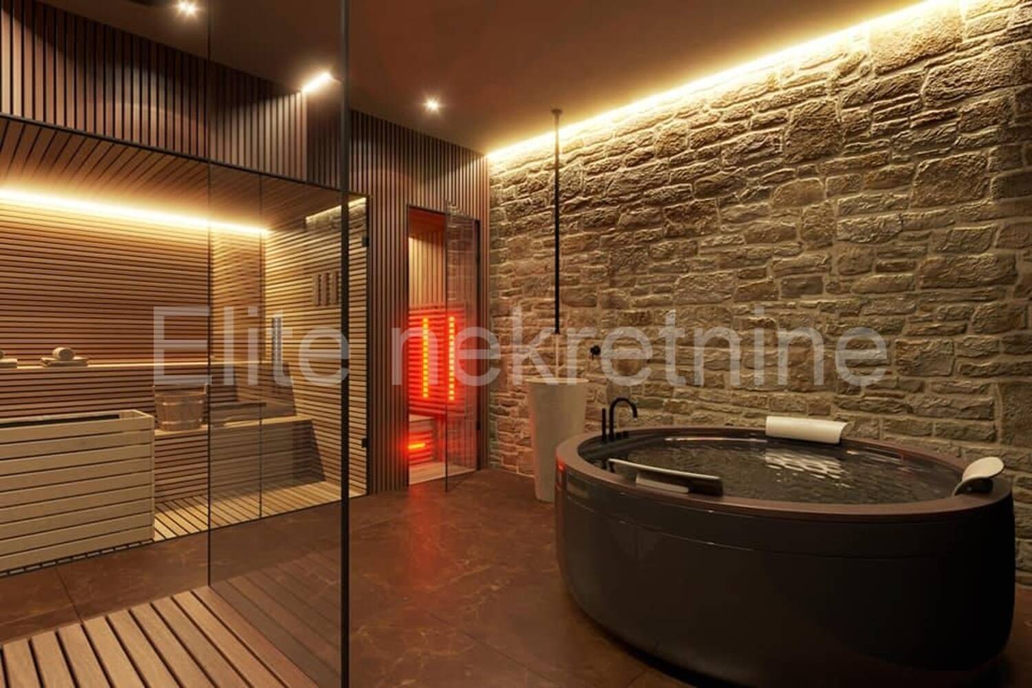 Kuća se po primjeru sastoji od:prostranog dnevnog boravka,kuhinje,spavaćih soba s vlastitim kupaonicama teterase s prekrasnim pogledom na okolnu prirodu,u sklopu projekta predviđen je i prostrani bazen,dodatnu udobnost i dozu luksuza projektu pridodaje wellness/spa centar i takozvani gentlemen's room.