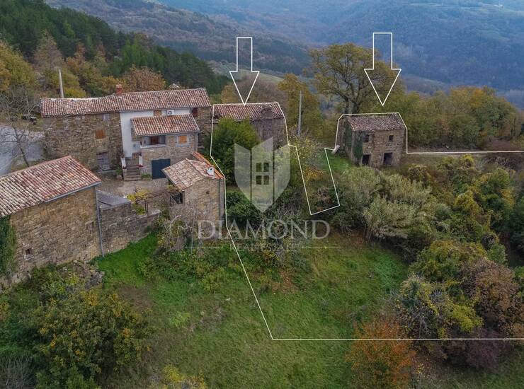 Na imanju se trenutno nalaze tri autohtone kamene kuće koje zahtijevaju kompletnu renovaciju, ali upravo u tome leži njihov najveći potencijal. Prva kuća, krajnja u nizu, ima tlocrt od 106 m², druga kuća odmah do nje raspolaže s 109 m², dok treća, samostojeća, nudi 107 m² tlocrtne površine. Svaka od njih nosi dio tr