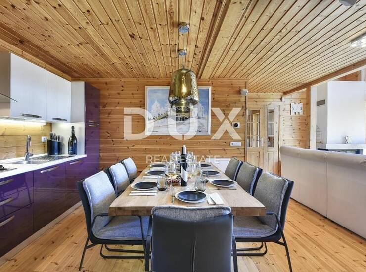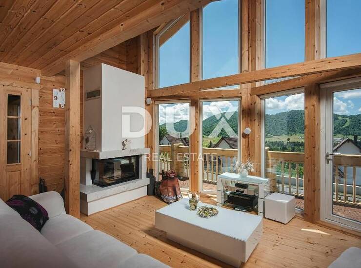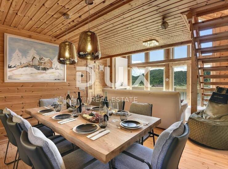 U srcu slikovitog Mrkoplja, smještena na sunčanoj padini, nalazi se idilična drvena kuća izrađena od visokokvalitetnih materijala, koju slobodno možemo nazvati čarobnim nordijskim remek-djelom. Svojim šarmantnim izgledom i elegancijom, ova kuća ističe se među prirodnim ljepotama Gorskog Kotara.