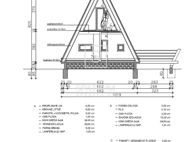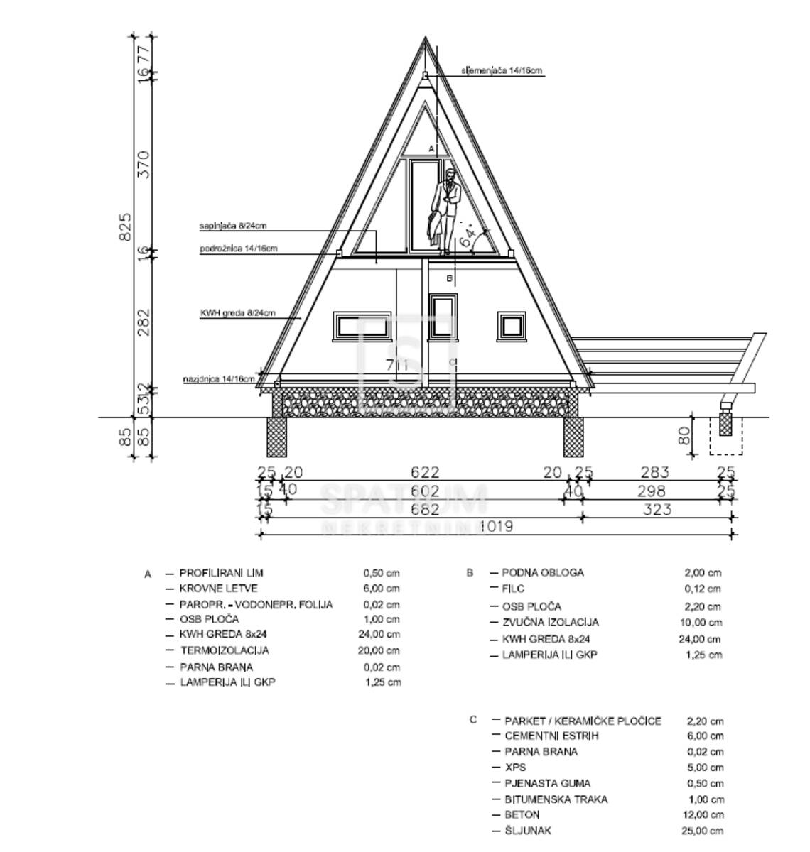 Teren je pravokutnog oblika, blago nakošen, ukuone površine 612m2. Prodaje se s pravomoćnom građevinskom dozvolom za gradnju A frame kuće. Voda i struja su dovedeni do terena, komunalni doprinosi su plaćeni tako da je teren spreman za gradnju.