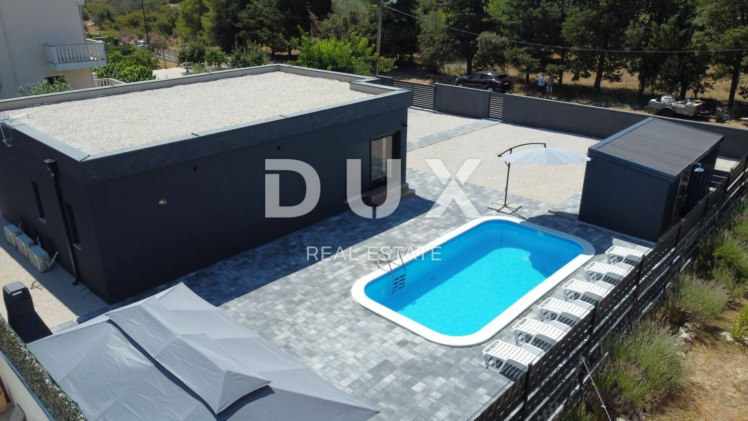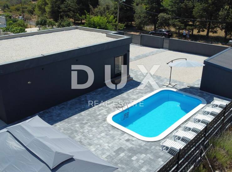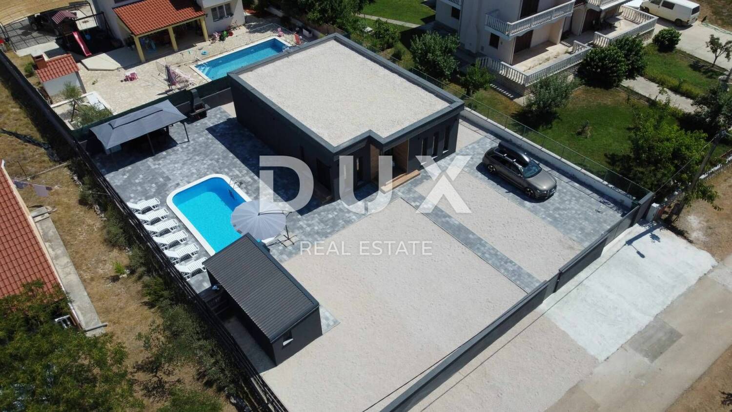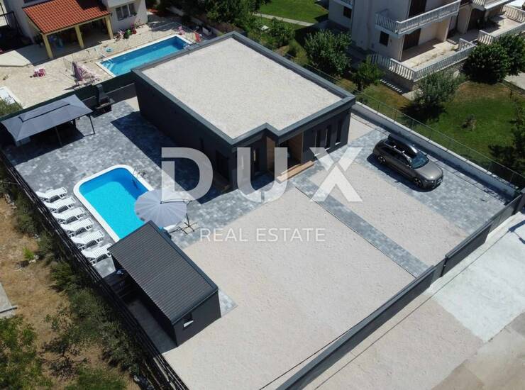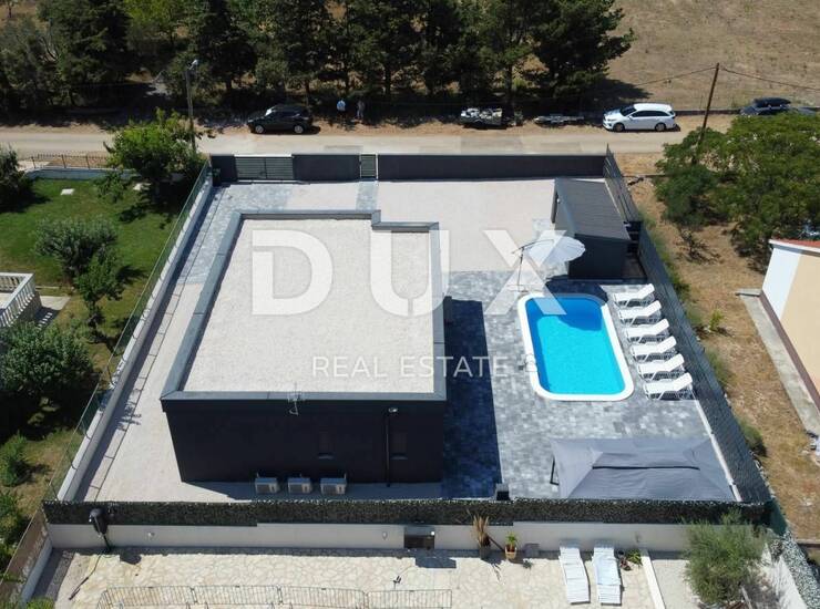 Svaka soba ima smart TV, dok klima uređaji u svim prostorijama jamče ugodnu temperaturu tijekom cijele godine. Uživajte u vlastitom bazenu, daleko od gradske vreve, u potpunoj privatnosti i miru. Na raspolaganju je čak 5 parkirnih mjesta, a lokacija je idealna – svega 6 minuta vožnje do plaže i 12 minuta do grada Zadra.