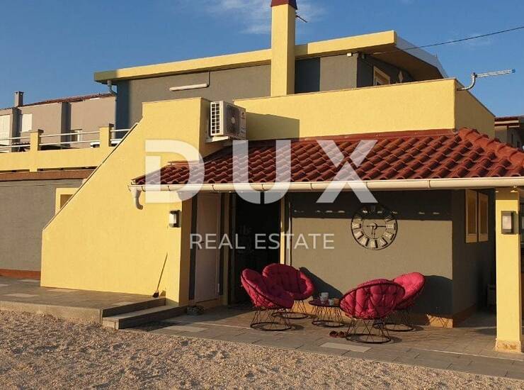 Prodajemo kuću koja se nalazi na ograđenoj okućnici uz plažu. Kuća je izgrađena 1968. godine, a renovirana 2013. Nalazi se u turističkom naselju koje je dio grada Nina. Od kuće do stare jezgre Nina dijeli vas 10 minuta laganog hoda uz more. Kuća je podijeljena na četiri apartmana. U prizemlju se nalaze dva jednosobna apartmana (jednostavno pretvaranje u veliki dvosobni apartman sa dvije kupaone, za osam osoba). Na katu se nalaze dva manja apartmana predviđena za smještaj 4 osobe. Apartmani imaju istu razinu opremljenosti. Svi imaju jednu ili dvije spavaće sobe, kompletno namještenu kuhinju, blagovaonu i kupaonu sa tušem i toaletom.