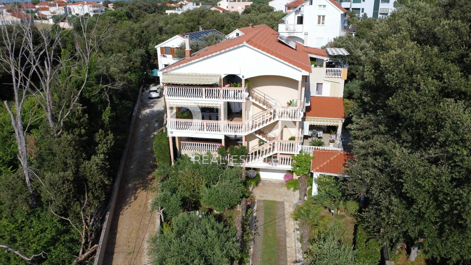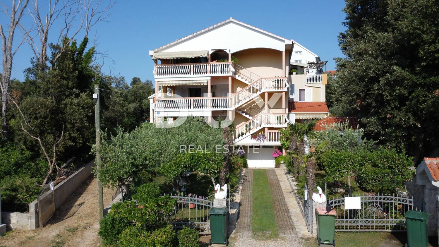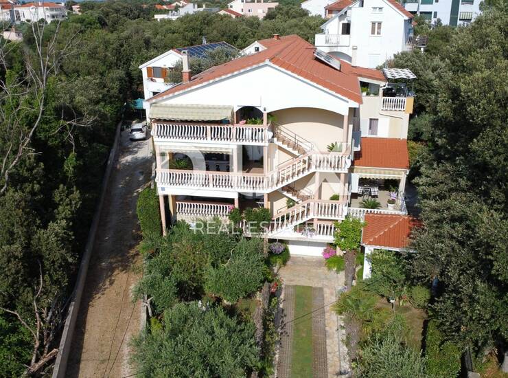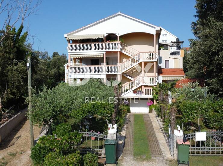 Prodaje se prostrana apartmanska vila u mjestu Zaton pokraj Zadra. Ukupne stambene površine 396,10 m2, vila je izgrađena na parceli od 626 m2 koja sveukupno broji pet apartmana sa zasebnim ulazima. Sastoji se od podruma, prizemlja kata i potkrovlja. U podrumu se nalazi garaža, te ljetna kuhinja i alatnica. U prizemlju nalazi se jedan trosobni apartman s prostranom terasom na ulazu, dnevnim boravkom i kuhinjom te dvije kupaonice. S bočne strane je zaseban ulaz u jednosobni apartman na dvije etaže koji također ima terasu. Na prvom katu nalazi se trosobni apartman, a u potkrovlju dva dvosobna apartmana s pripadajućim terasama s kojih se pruža prekrasan pogled na more. U dvorištu se nalazi i lounge prostor s roštiljem te uređeni vrt i dječje igralište. Osim garaže, u dvorištu je dostupan privatni parking s dodatna dva parkirna mjesta.