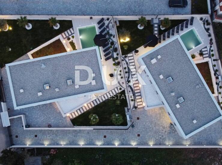 Predstavljamo vam izuzetnu priliku za kupnju luksuzne vile smještene u slikovitom Zatonu, udaljene samo 1100 metara od prekrasne obale. Ova elegantna novogradnja proteže se na impresivnih 198,93 m2 i predstavlja savršen spoj sofisticiranog dizajna i vrhunske kvalitete. Vila je opremljena grijanim bazenom, što omogućava uživanje u kupanju tijekom cijele godine, dok podno grijanje, instalirano u svim prostorijama, pruža vrhunsku udobnost.
