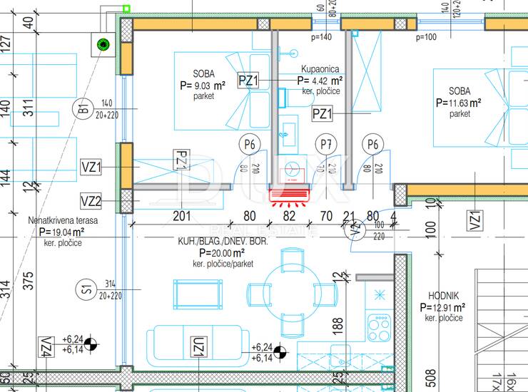 Stan se prostire na 60,24 m2 neto površine i odlikuje se iznimno funkcionalnim rasporedom: kuhinja s blagovaonicom i dnevnim boravkom čini središte doma, dok dvije spavaće sobe i kupaonica osiguravaju udobnost za svakodnevni život. Uz stan dolazi prostrana natkrivena terasa od čak 19,04 m2 – savršeno mjesto za opuštanje ili druženje, dva vlastita vanjska parkirna mjesta ukupne površine 28 m2 te zajedničko spremište površine 20 m2, što dodatno olakšava organizaciju prostora.