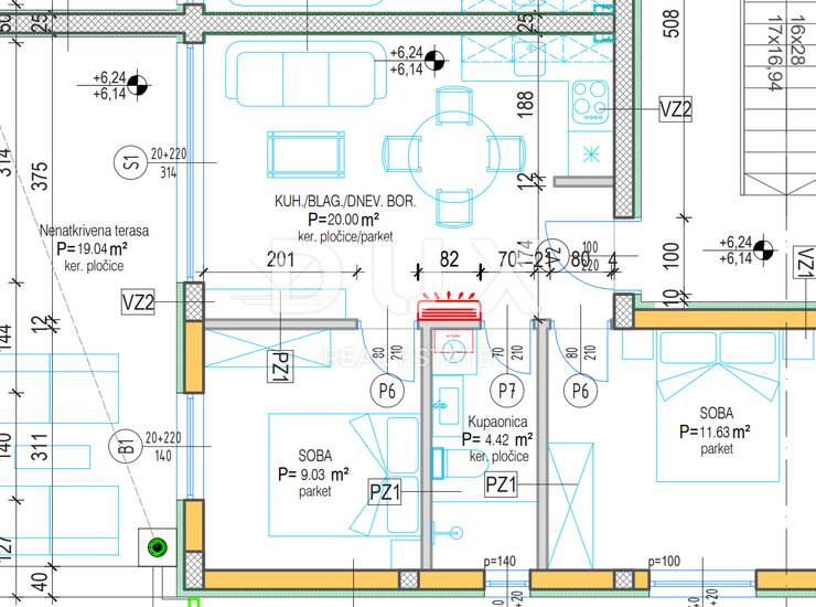 U gradnji i opremanju korišteni su najmoderniji materijali i tehnologije: troslojna PVC stolarija s električnim roletama, podno grijanje, klima uređaj s Wi-Fi upravljanjem, protuprovalna i protupožarna vrata, vrhunska toplinska izolacija debljine 10 cm, video portafon te ugrađeni Geberit sustavi – sve kako bi se osigurala maksimalna udobnost i sigurnost budućih vlasnika.