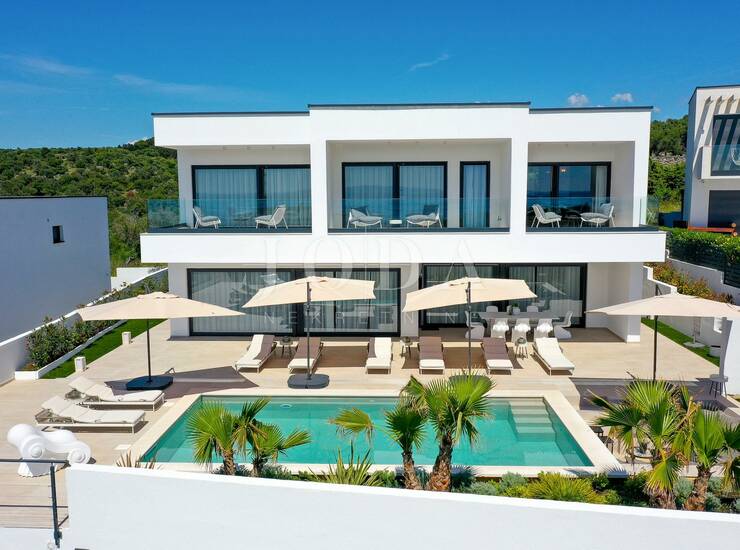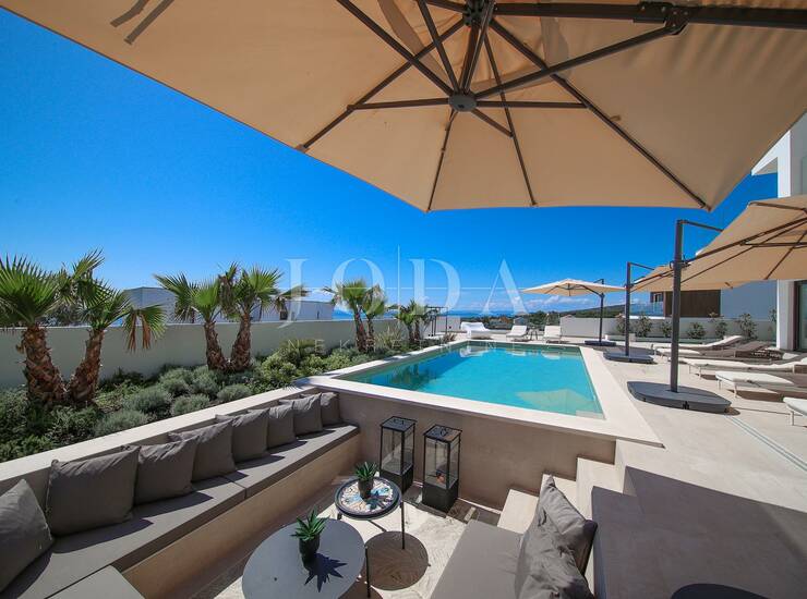 Prodajemo luksuznu modernu vilu s bazenom i spektakularnim pogledom na more smještenu na odličnoj lokaciji u malom mjestu Jakišnica na otoku Pagu.