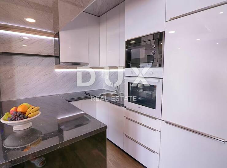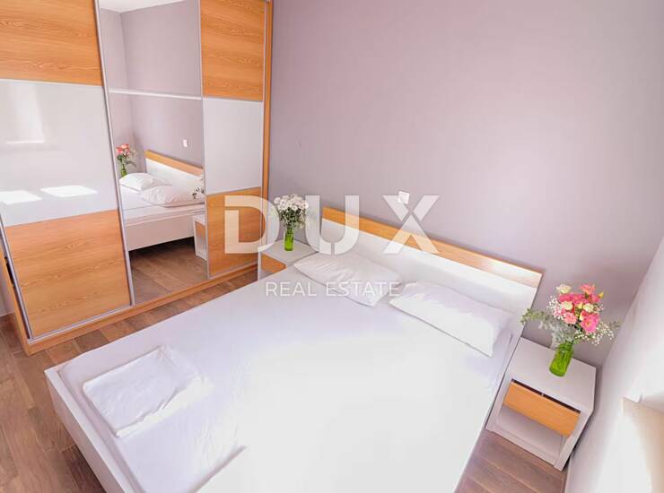 Prodajemo 3s+db stan u održavanoj stambenoj zgradi od samo četiri stambene jedinice. Stan je u potpunosti namješten te se kao takav i prodaje, sveukupne stambene površine od 100m2 koji se sastoji se od ulaznog hodnika, gostinjskog toaleta, open space dnevnog djela s kuhinjom i blagovaonicom, tri spavaće sobe od kojih master soba ima vlastitu kupaonu. Iz dnevnog djela izlazimo na terasu sa sunčalištem i bazenom. Poseban ulaz s vlastitom okućnicom, dvorištem u kojem imamo komotnu garažu za dva automobila.