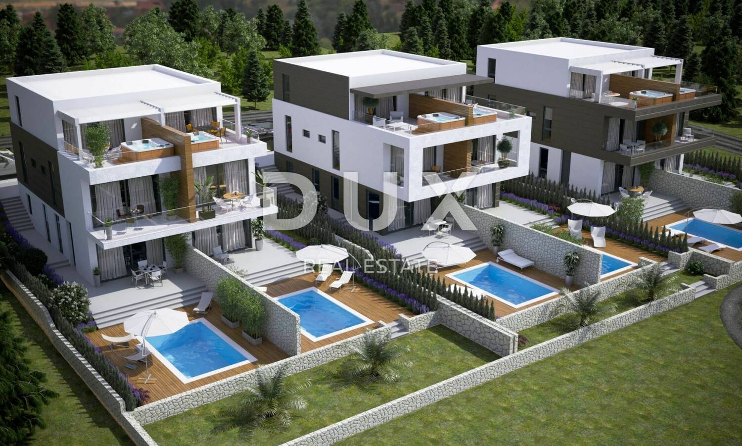 Na otoku Pagu u Novalji na samo 200 metara od mora su se smjestile tri urbane vile s po 4 stambene jedinice u svakoj. Dvosobni apartmani u prizemlju od 62 i 69 m2 posjeduju vrt, bazen i jedno parkirno mjesto, dok se dvoetažni apartmani nalaze na katu i posjeduju jacuzzi na krovnoj terasi. Vrhunske novogradnje okružene zelenilom na predivnoj lokaciji u blizini grada i mora.