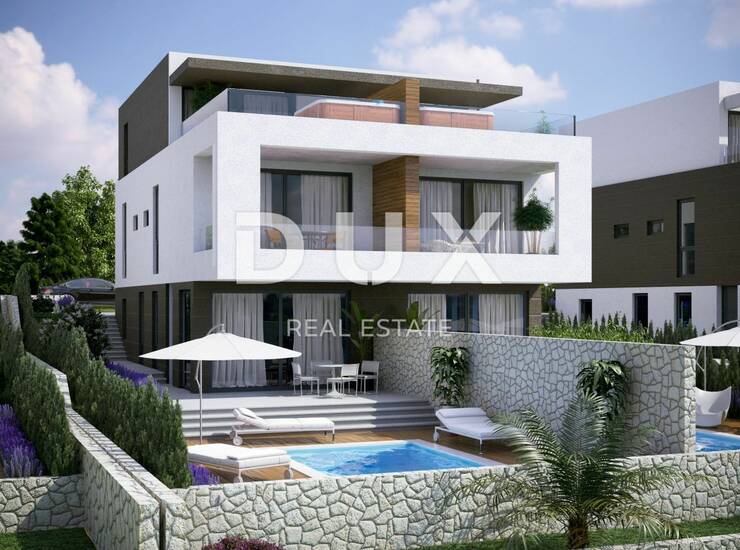 Posredujemo u prodaji predivnog dvoetažnog penthouse-a u urbanoj vili s 4 stambene jedinice. Apartman se sastoji od dvije spavaće sobe, dnevnog boravka s kuhinjom, hodnika, dva kupatila, zaseban WC, balkona, terase i galerije koja se može iskoristiti kao treća spavaća soba ili prostor za druženje. Pripadaju mu spremište i dva parkirna mjesta u vlasništvu. Stambena površina apartmana iznosi 99 m2. Terasa će biti opremljena jacuzzijem. Novogradnja je izgrađena vrhunskim materijalima i s podnim grijanjem u svim prostorijama, a lokacija je u neposrednoj blizini mora i plaže.