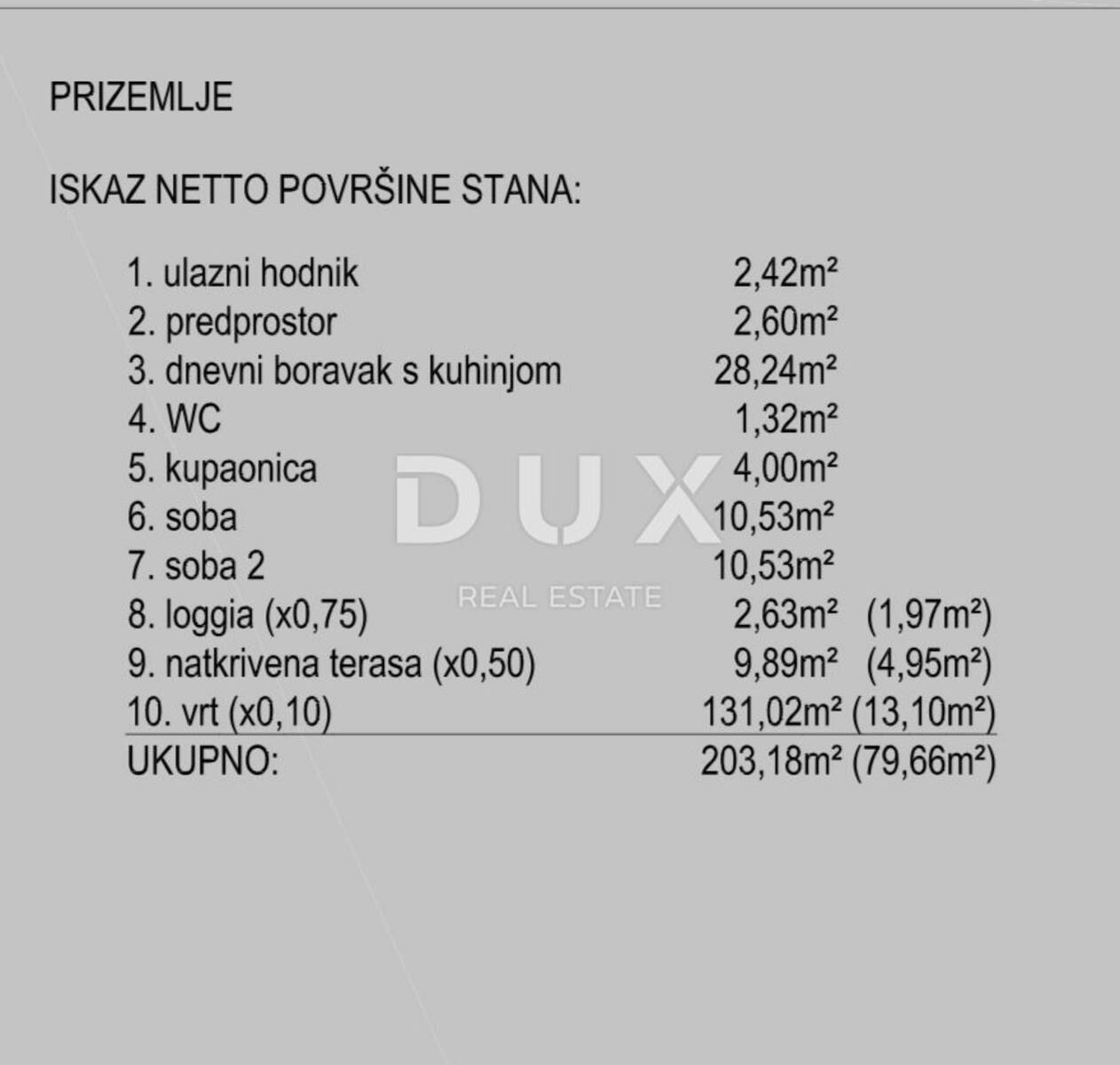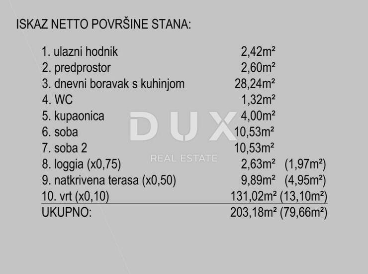1 parkirnog mjesta. Ukupna netto površina: 82,91m2. Ukupna bruto površina: 216,18m2.