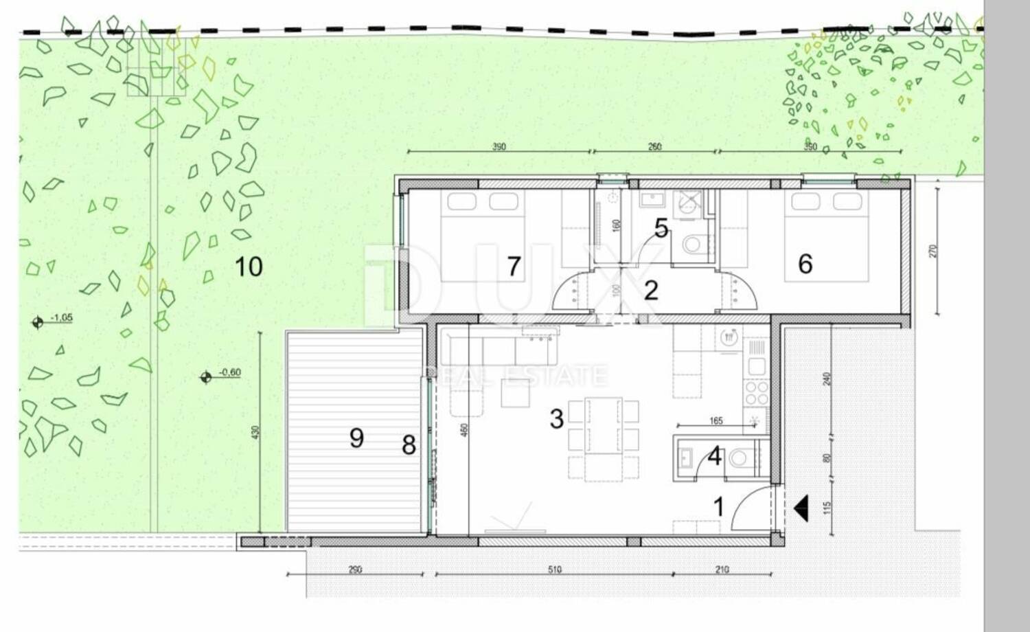 Riječ je o atraktivnoj lokaciji s koje se pruža predivan pogled na more na svega nekoliko minuta od plaže. Kvalitetna novogradnja moderne arhitekture. Visokokvalitetna PVC stolarija s troslojnim staklima, komarnicima i električnim aluminijskim roletnama. Podno grijanje provedeno je u svim prostorijama kao i klima uređaj za grijanje i hlađenje u spavaćim sobama i dnevnome prostoru. Prvoklasna sanitarija, protuprovalna ulazna vrata. Useljivo u 5. mjesecu 2024. godine.