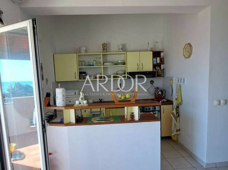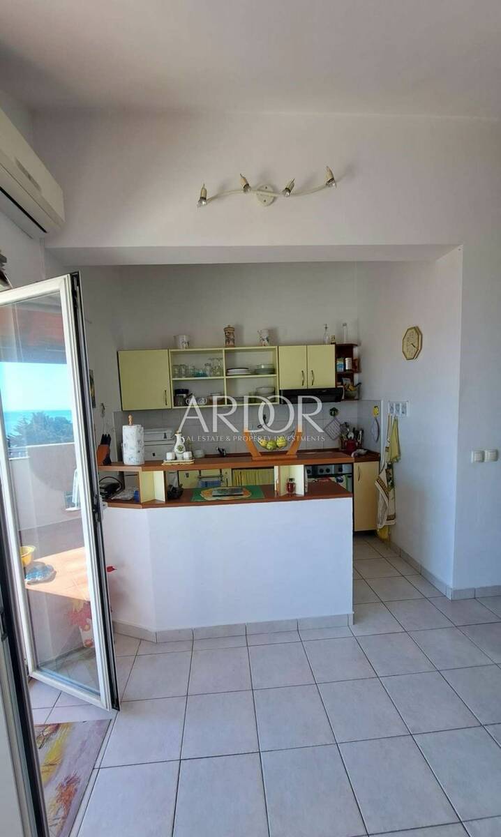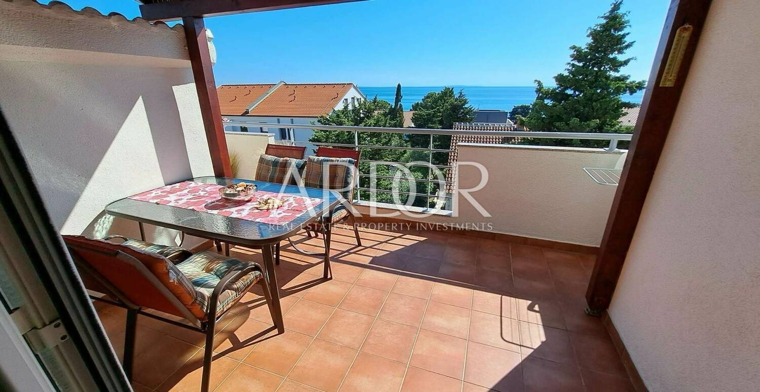 Apartman se sastoji od dnevnog boravka s kuhinjom, dvije spavaće sobe, kupaonice, zasebnog WC-a, hodnika te balkona s kojeg se pruža predivan panoramski pogled na more. Prostor je funkcionalno raspoređen i pruža ugodan boravak kako za odmor, tako i za turistički najam.
