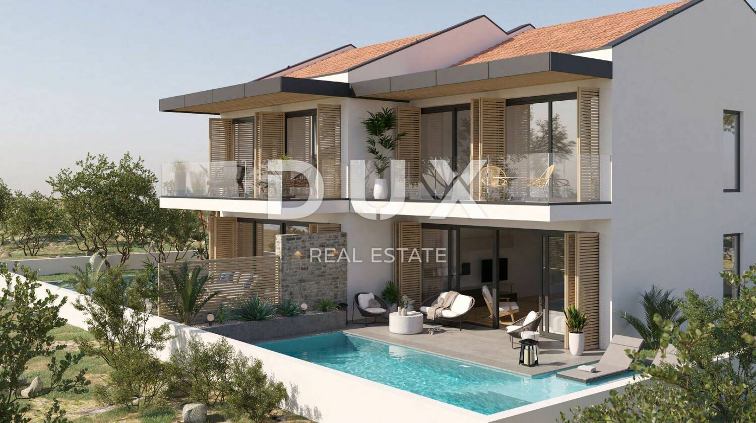 OTOK PAG, NOVALJA, POTOĆNICA - 3s+db stan s bazenom i okućnicom