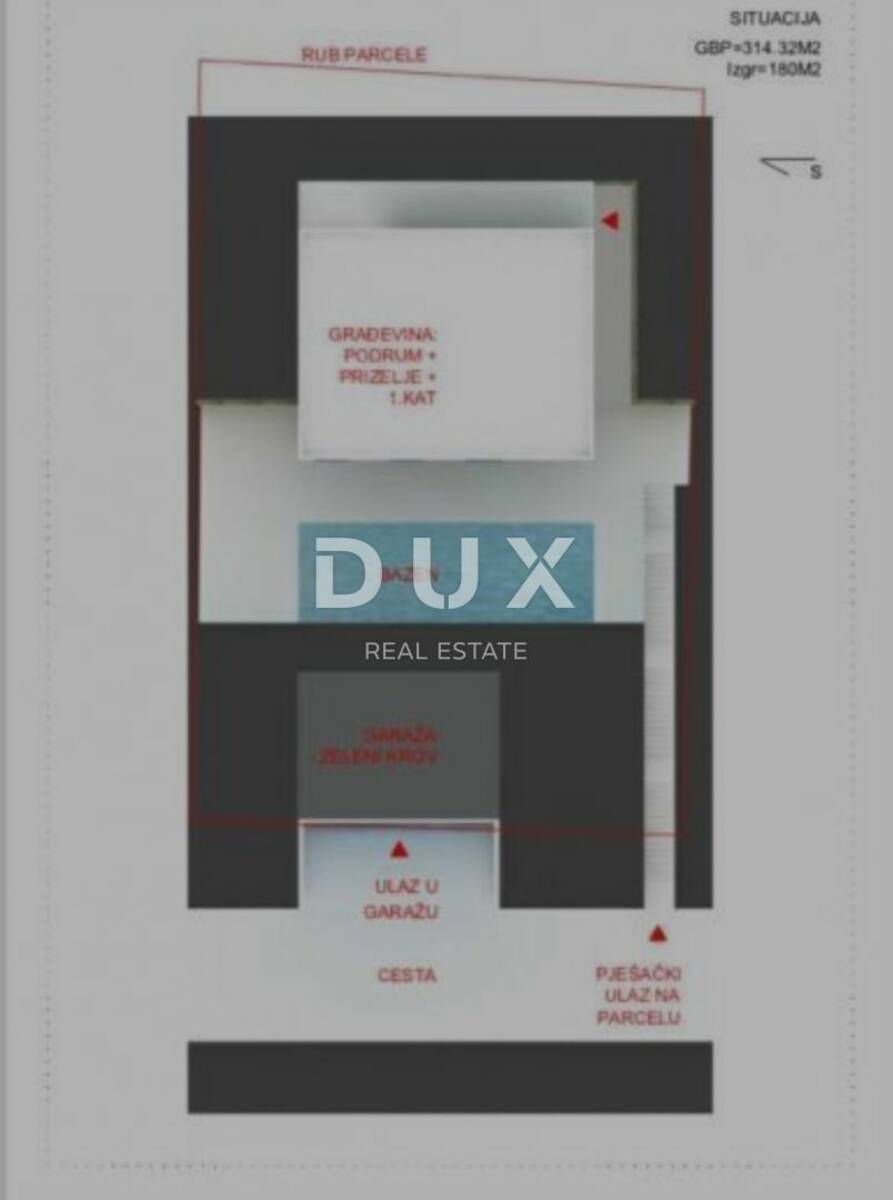 Nekretnina se sastoji od podruma, prizemlja i prvog kata te joj pripada bazen i garaža.