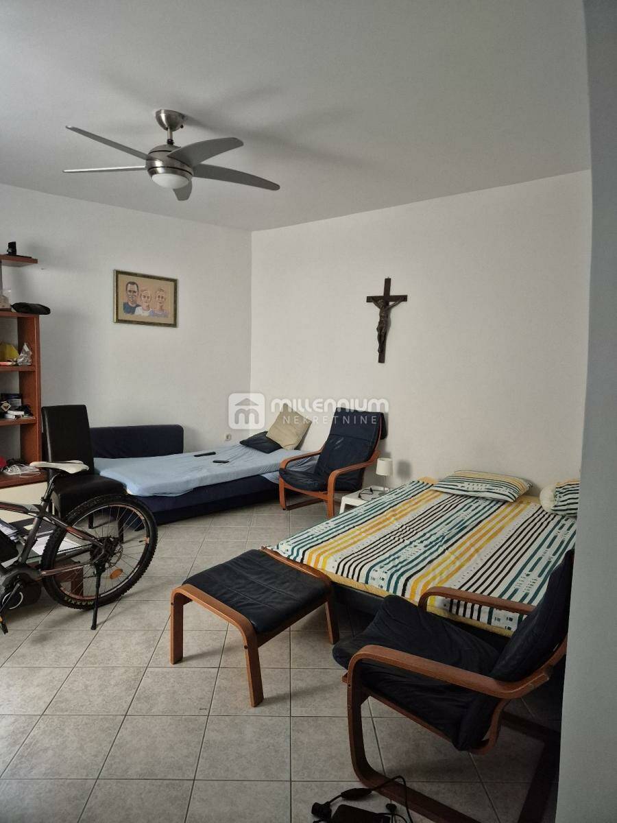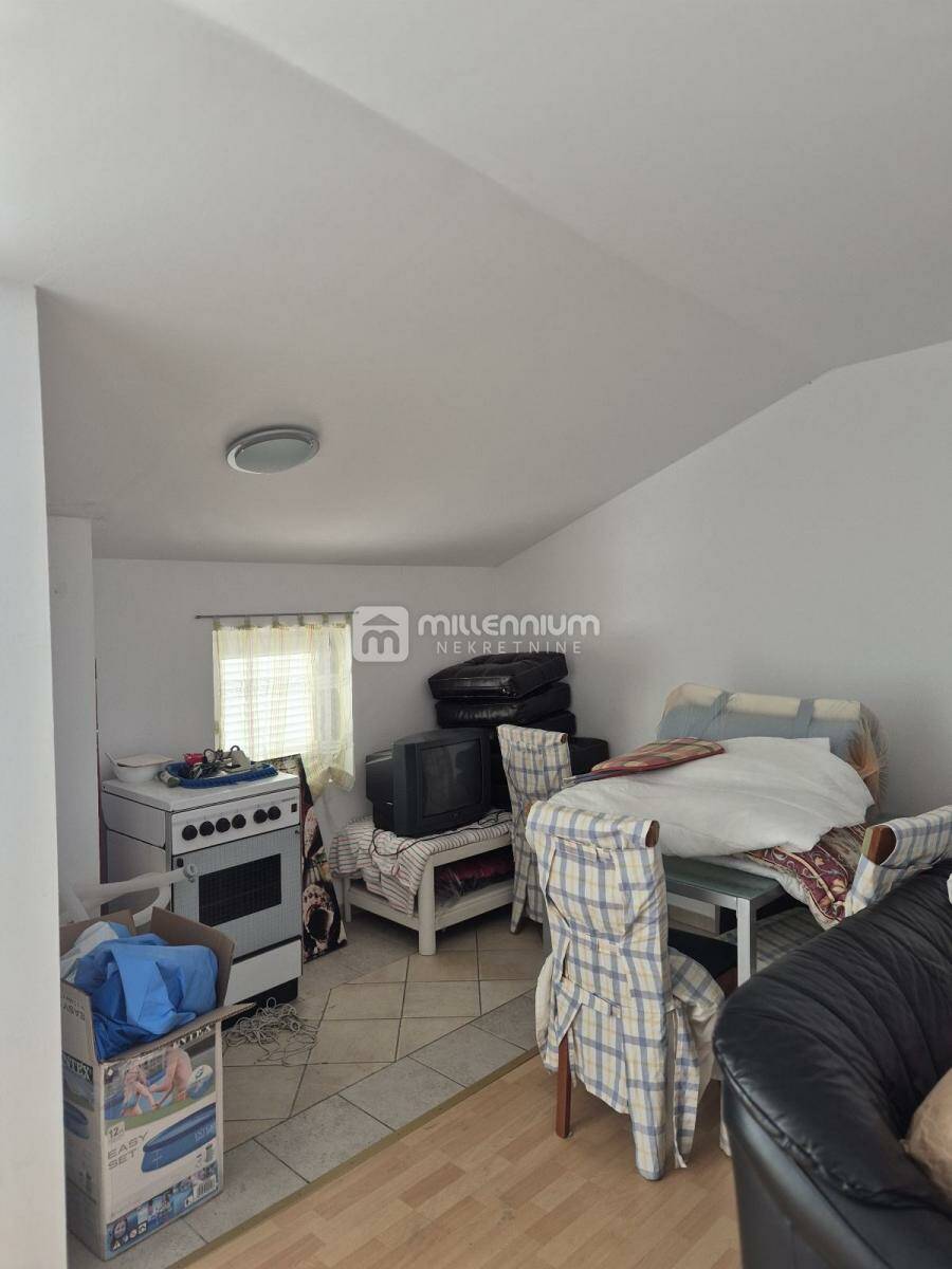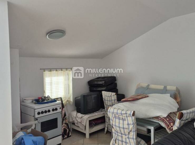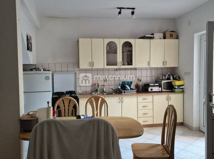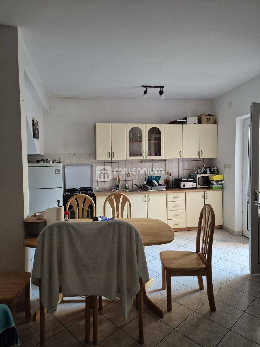 Prodaje se kuća u nizu na izvrsnoj lokaciji, svega 100 metara od mora, prostire se na tri etaže i nudi funkcionalan raspored idealan za obiteljski život ili turistički najam. U prizemlju se nalazi uređeno dvorište površine 15m², kuhinja s blagovaonicom, dnevni boravak, kupaonica te ostava. Prvi kat obuhvaća dvije spavaće sobe, od kojih jedna ima izlaz na balkon, dodatni dnevni boravak te kupaonicu. Na drugom katu smještena je još jedna soba, kuhinja s blagovaonicom i kupaonica, a s ove etaže izlazi se na prostranu terasu od 30m² s predivnim pogledom na more. Kuća ukupno raspolaže sa sedam soba i tri kupaonice, potpuno je namještena i kao takva se prodaje, spremna za useljenje bez dodatnih ulaganja. Spoj blizine mora, funkcionalnog rasporeda i prostrane terase čini ovu nekretninu iznimnom prilikom